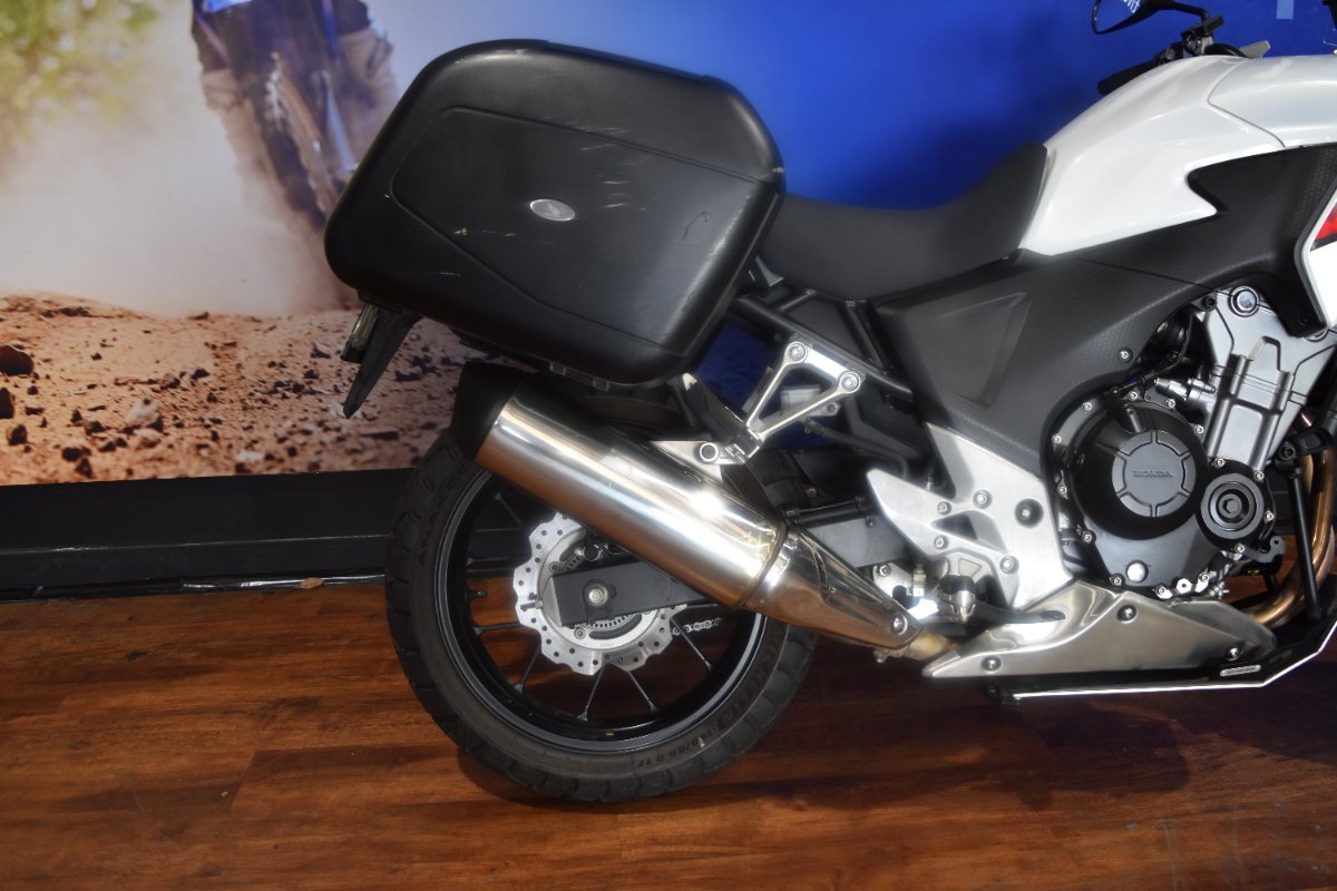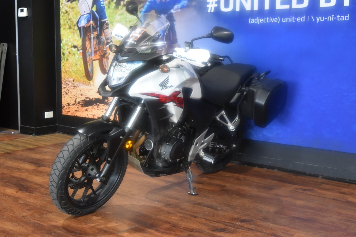 Adventure-ready 2014 Honda CB500X for sale! This reliable mid-weight explorer is built for comfort and durability, enhanced with hard panniers for secure storage, an alloy bash guard for rugged protection, bark busters to shield your hands, and heated grips to keep you riding year-round. Perfect for commuting or conquering trails, the CB500X blends Hondas legendary reliability with practical upgrades that make it stand out from the rest. Whether you're chasing weekend adventures or daily rides, this bike is ready to go the distance. Dont miss your chance to own a fully equipped CB500X!